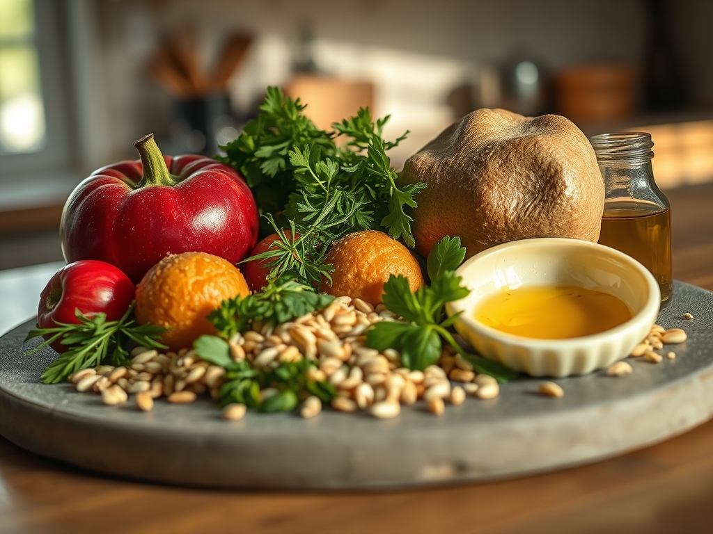 Frutos secos tostados, como nozes ou pistácios, e uma redução de vinho tinto ou frutos vermelhos. Estes elementos adicionam acidez e textura, equilibrando a untuosidade das bolinhas de queijo brie e mel redondas.