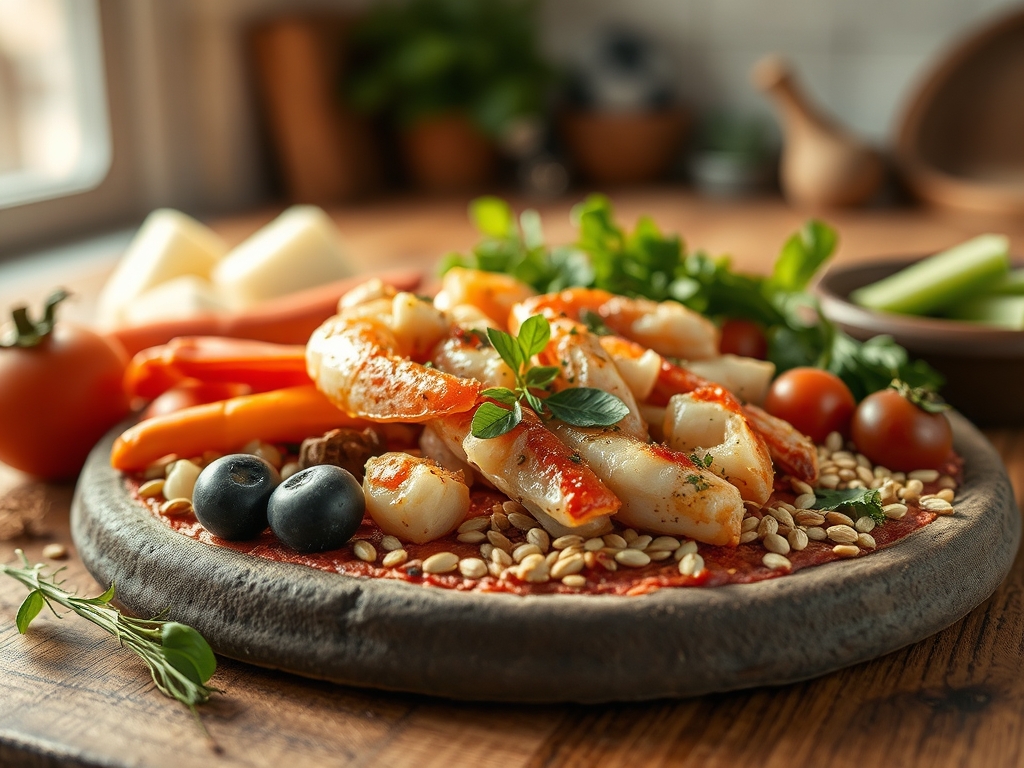 • Keto: Substitui a base por uma massa de couve-flor e queijo parmesão, focando no topping de camarão e azeite de ervas.